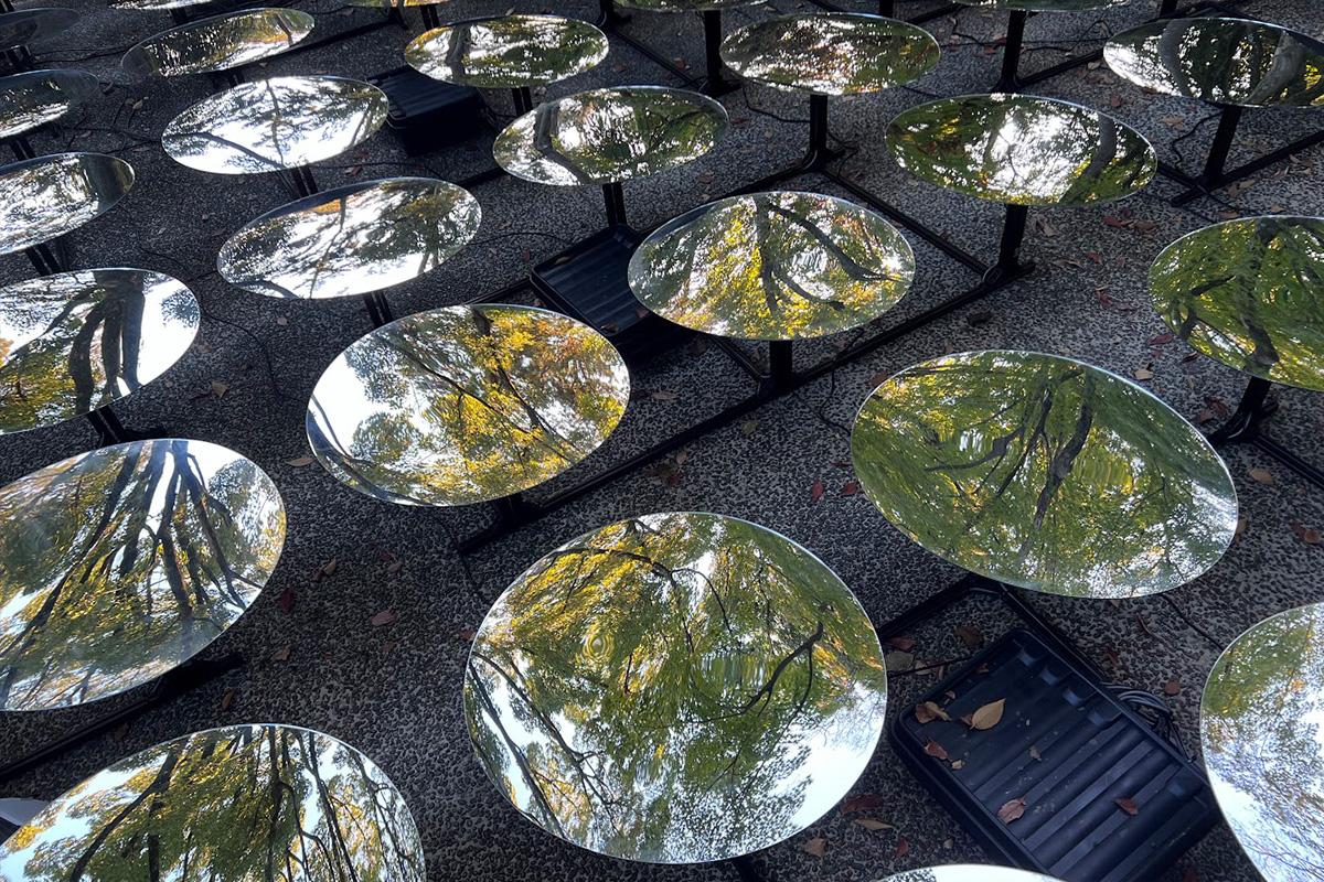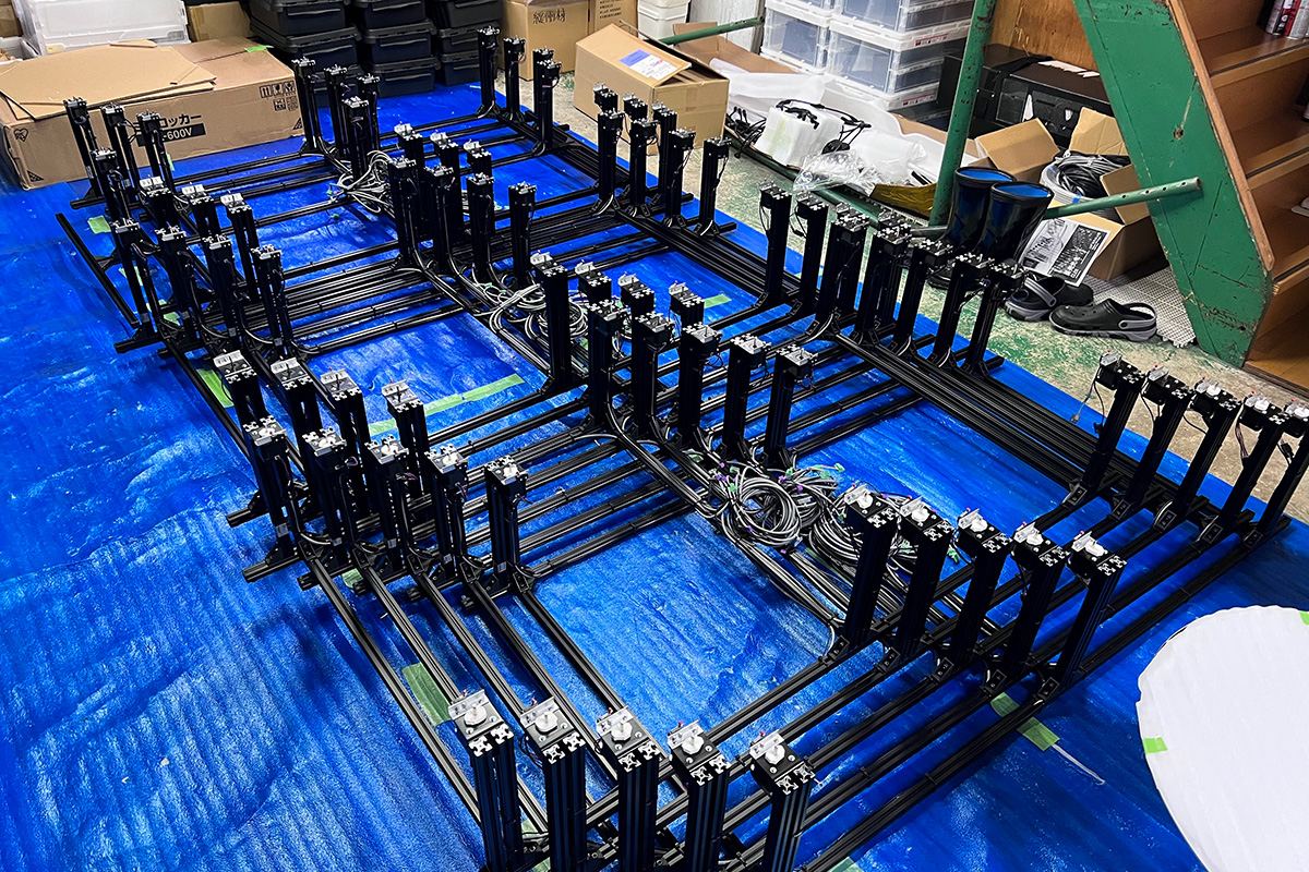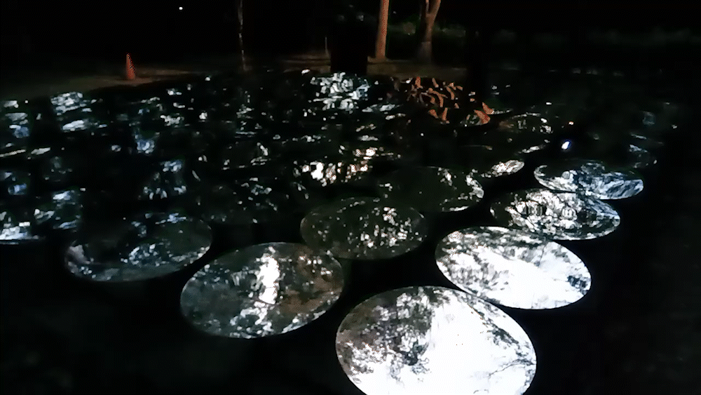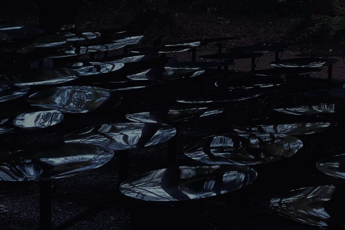 consists of 81 acryl mirrors laid out in 6m x 6m groid. By controlling the direction of the mirrors, combined with