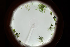 The herbs offers visual as well as aromatic atmosphere of the garden. A RGB-LED strip simulates daily light from dawn to dusk. Small speaker unit plays environmental sound to provide outdoor atmosphere in the half sphere and