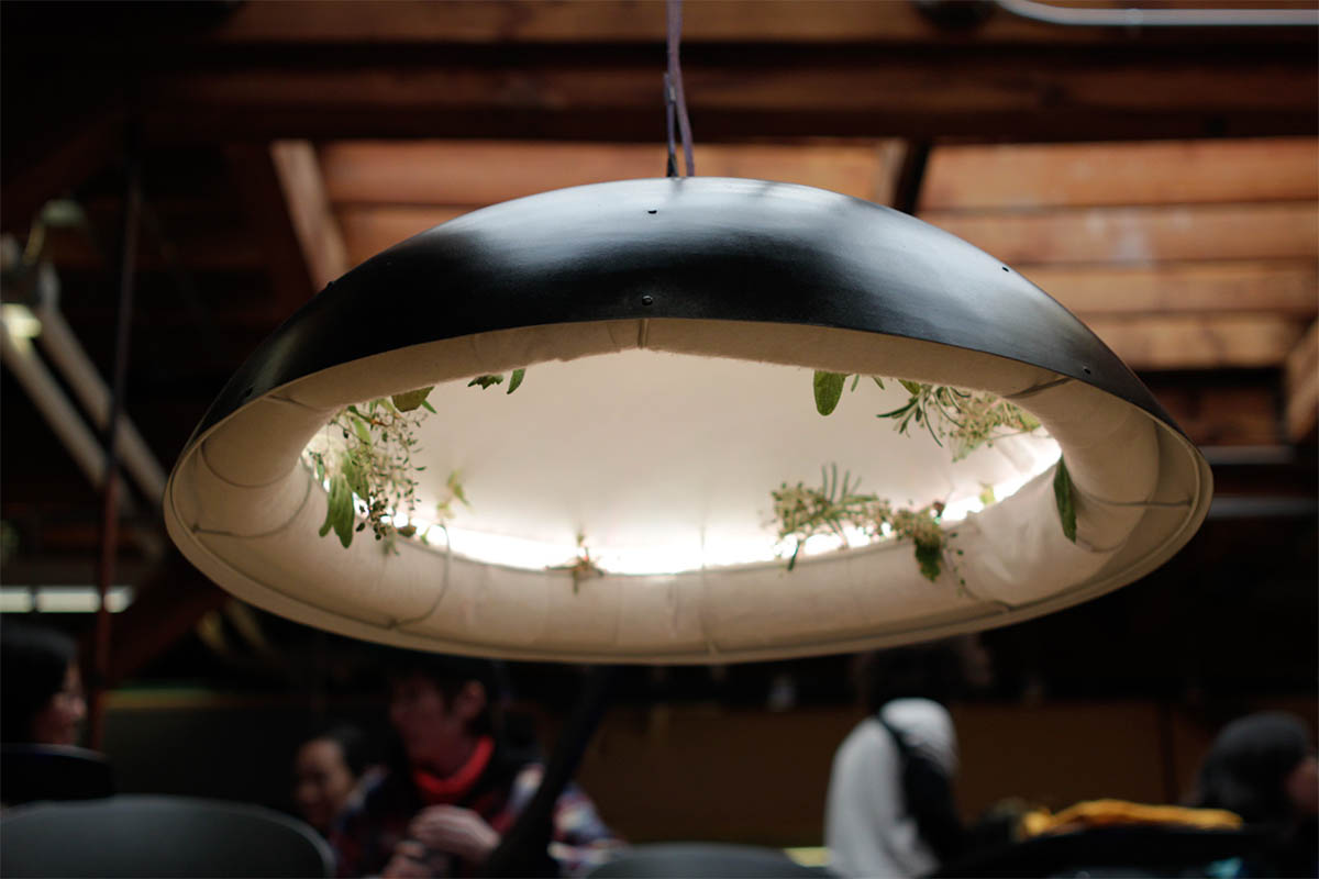 The lamp offers an escaping pod in stressful environment, by making imaginal garden inside of ordinal pendant lampshade. To keep plants ins the lamp, a mock up of a hydroponic system is installed.