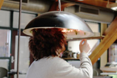 The lampshade was shaped from aluminium sheet by pounding and English-wheeling process.